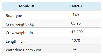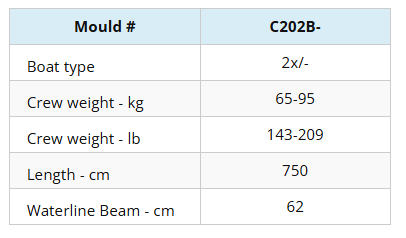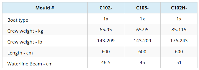 El factor más importante a tener en cuenta a la hora de elegir un casco de regata es el peso de diseño. Para maximizar la velocidad de su tripulación es esencial que remen en un barco diseñado para su peso. Con nuestra gama de moldes, quizá la mayor de cualquier constructor, remará en una embarcación diseñada para una tripulación de su peso, no en una versión «recortada» de alguna embarcación más grande.